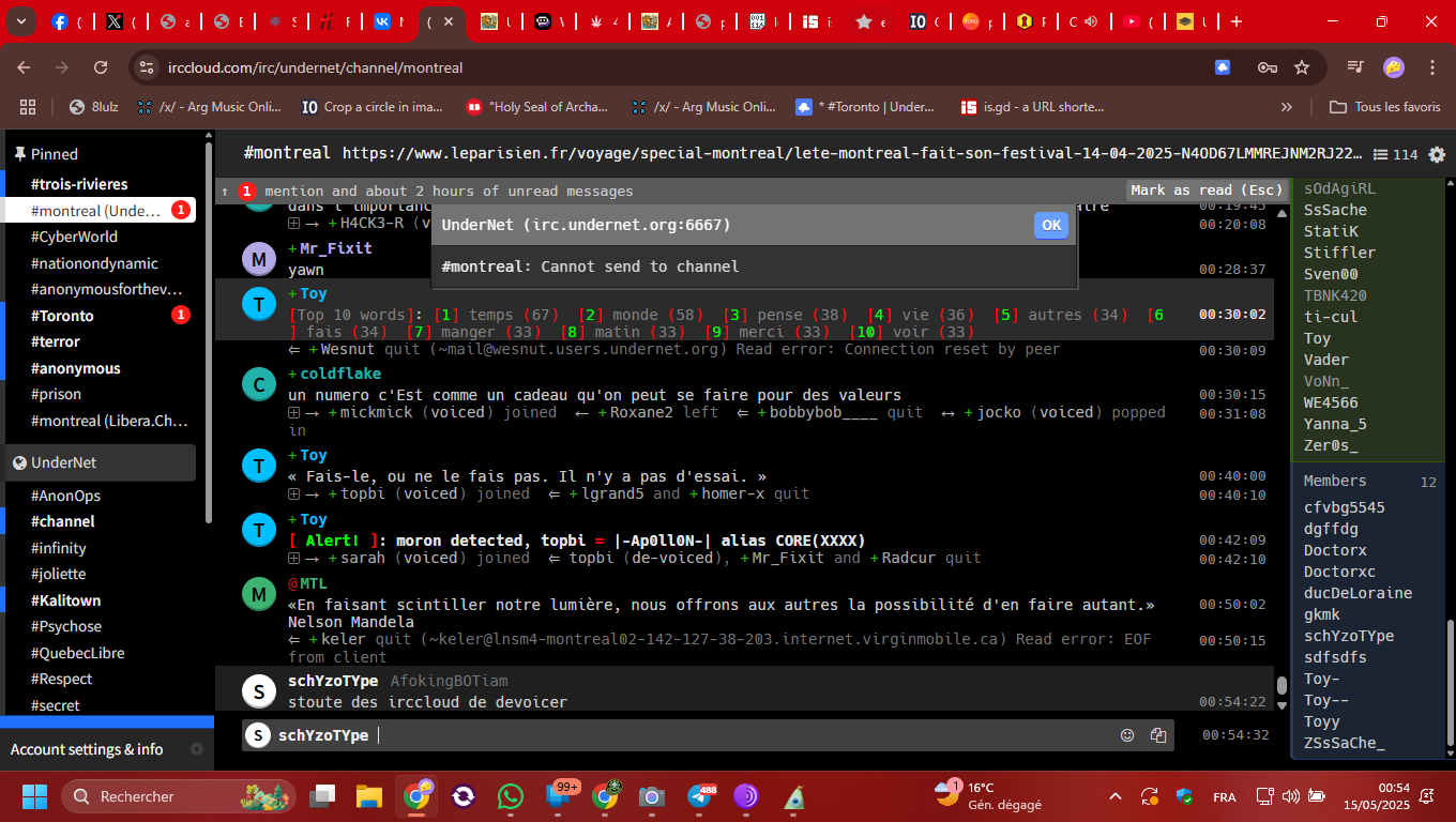 19:11:00 → cicada570 and virus joined ⇐ @input quit • Channel mode: +tn